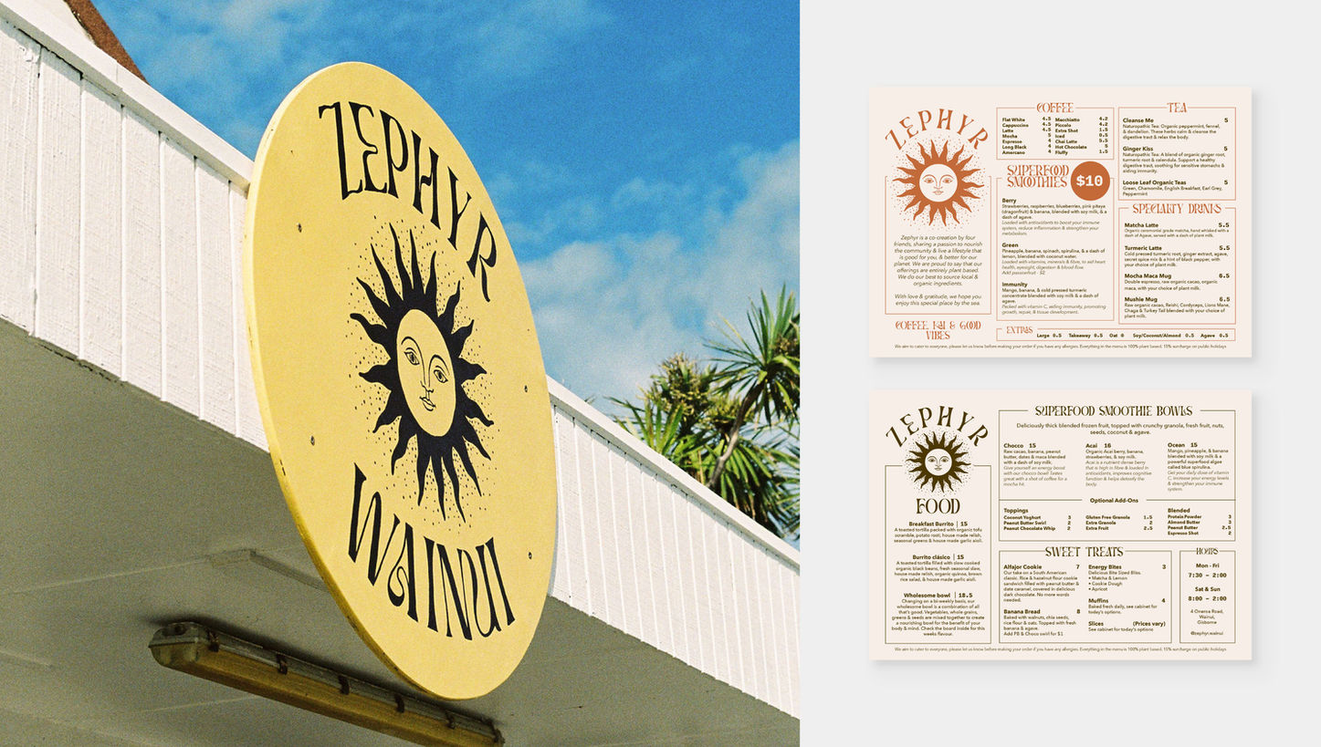 Redesigned the brand identity, menus, and merchandise for Zephyr Café and General Store, translating the café’s welcoming, sunlit environment and community-focused ethos into a consistent and engaging visual system.
